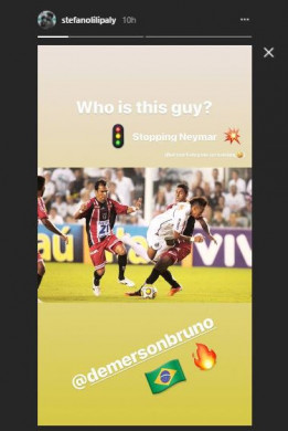 Lilipaly mengunggah dalam Instastory, foto Demerson menahan laju Neymar di Liga Brasil. Saat itu, bintang Paris Saint-Germain tersebut masih berkostum Santos FC dan Demerson membela Botafogo FC.