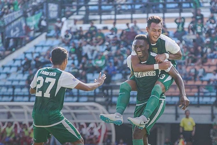 Striker Persebaya Surabaya, Amido Balde, merayakan gol yang diciptakannya saat melawan Persing Ngawi pada babak 32 besar Piala Indonesia 2018. (INSTAGRAM PERSEBAYA)