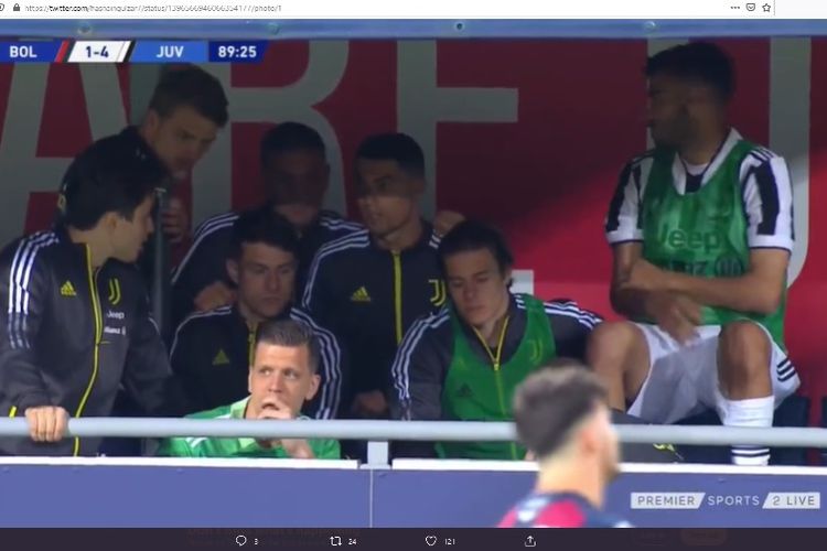 Menariknya, CR7 dan beberapa pemain cadangan Juventus kedapatan sedang menonton pertandingan Napoli melawan Verona melalui gadget.
