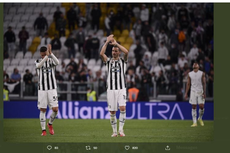 Leonardo Bonucci memberi aplaus kepada suporter pascaduel Liga Italia melawan AC Milan. (TWITTER.COM/BONUCCI_LEO19)