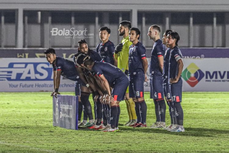 Skuat Arema FC sedang berfoto tim dalam laga pekan keempat Liga 1 2021 di Stadion Madya, Senayan, Jakarta, 25 September 2021. (MUHAMMAD ALIF AZIZ MARDIANSYAH/BOLASPORT.COM )