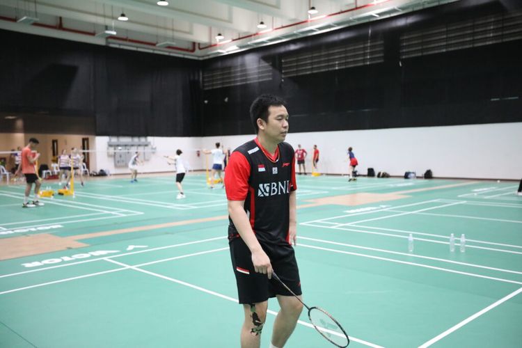 Pemain ganda putra Indonesia sekaligus kapten tim Thomas Indonesia, Hendra Setiawan saat menjalani sesi latihan jelang laga perdana Thomas Cup 2022, di Bangkok, Thailand, Jumat (6/5/2022) (PBSI)