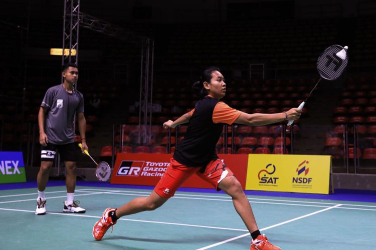 Pasangan ganda campuran Indonesia, Jafar Hidayatullah/Aisyah Salsabila Putri Pranata, berlatih jelang Thailand Open 2023 di Indoor Stadium Hua Mark, Senin (29/5/2023). (PP PBSI)
