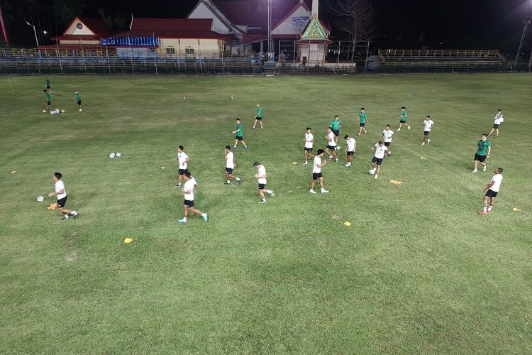 Latihan resmi Timnas U-23 Indonesia di Nonglalok Stadium, Kamis (17/8/2023). (BAGAS REZA MURTI/BOLASPORT.COM)