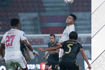 Sepakan keras Dedik dari dalam kotak penalti Bhayangkara FC pada menit ke-68 masih melebar tipis.