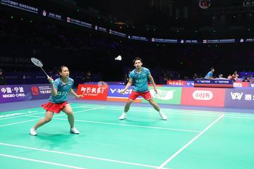 BOLASPORT.COM - Pasangan ganda campuran Indonesia, Rinov Rivaldy/Pitha Haningtyas Mentari, angkat koper pada babak kedua Kejuaraan Asia 2024.