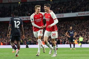 Kerja sama apik itu diakhiri dengan tembakan mendatar dari Odegaard yang mengarah ke pojok kanan bawah gawang.