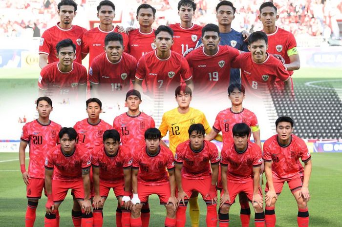 Ilustrasi foto skuad timnas U-23 Indonesia dan timnas U-23 Korsel yang bertemu di perempat final Piala Asia U-23 2024. (BOLASPORT.COM)BOLANAS.COM - Keberadaan Shin Tae-yong membuat pelatih timnas U-23 Korea Selatan, Hwang Sun-hong, ketar-ketir lawan timnas U-23 Indonesia di Piala Asia U-23 2024.