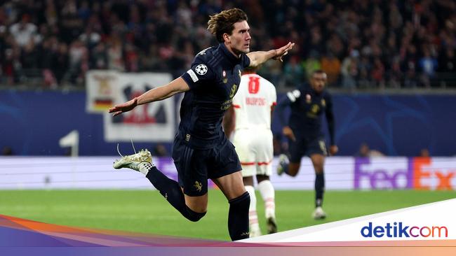 Vlahovic melepaskan bola sepakan dari luar kotak penalti yang melambung mulus ke pojok gawang Leipzig. Skor sama kuat 2-2.