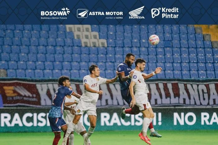 Peluang perdana via Yuran Fernandes bisa dipatahkan Leonardo Navacchio.