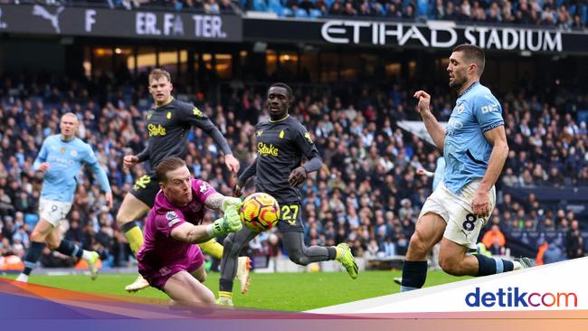 Pickford jadi benteng untuk Everton karena beberapa kali mampu menggagalkan serangan City.