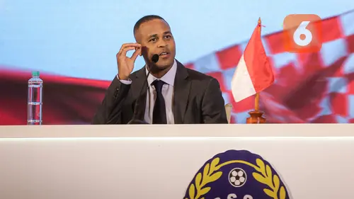 Pelatih anyar Timnas Indonesia, Patrick Kluivert, diperkenalkan dalam konferensi pers yang digelar di Hotel Mulia Senayan, Jakarta, Minggu (12/1/2025) sore WIB. (Bola.com/Bagaskara Lazuardi)