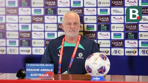 Gestur pelatih Timnas Australia, Graham Arnold, lebih cair menjelang duel versus Timnas Indonesia alam matchday kedua Grup C putaran ketiga Kualifikasi Piala Dunia 2026 Zona Asia di Stadion Utama Gelora Bung Karno (SUGBK), Jakarta Pusat, pada Selasa (10/9/2024) malam WIB. (Bola.com/Abdul Aziz)... Selengkapnya
