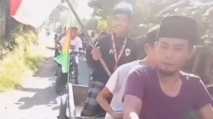 Adapun, dalam video yang beredar, Dimas tampak duduk di atas gerobak rakitan sambil mengibarkan bendera merah putih, diiringi sejumlah warga yang membuntutinya naik motor.