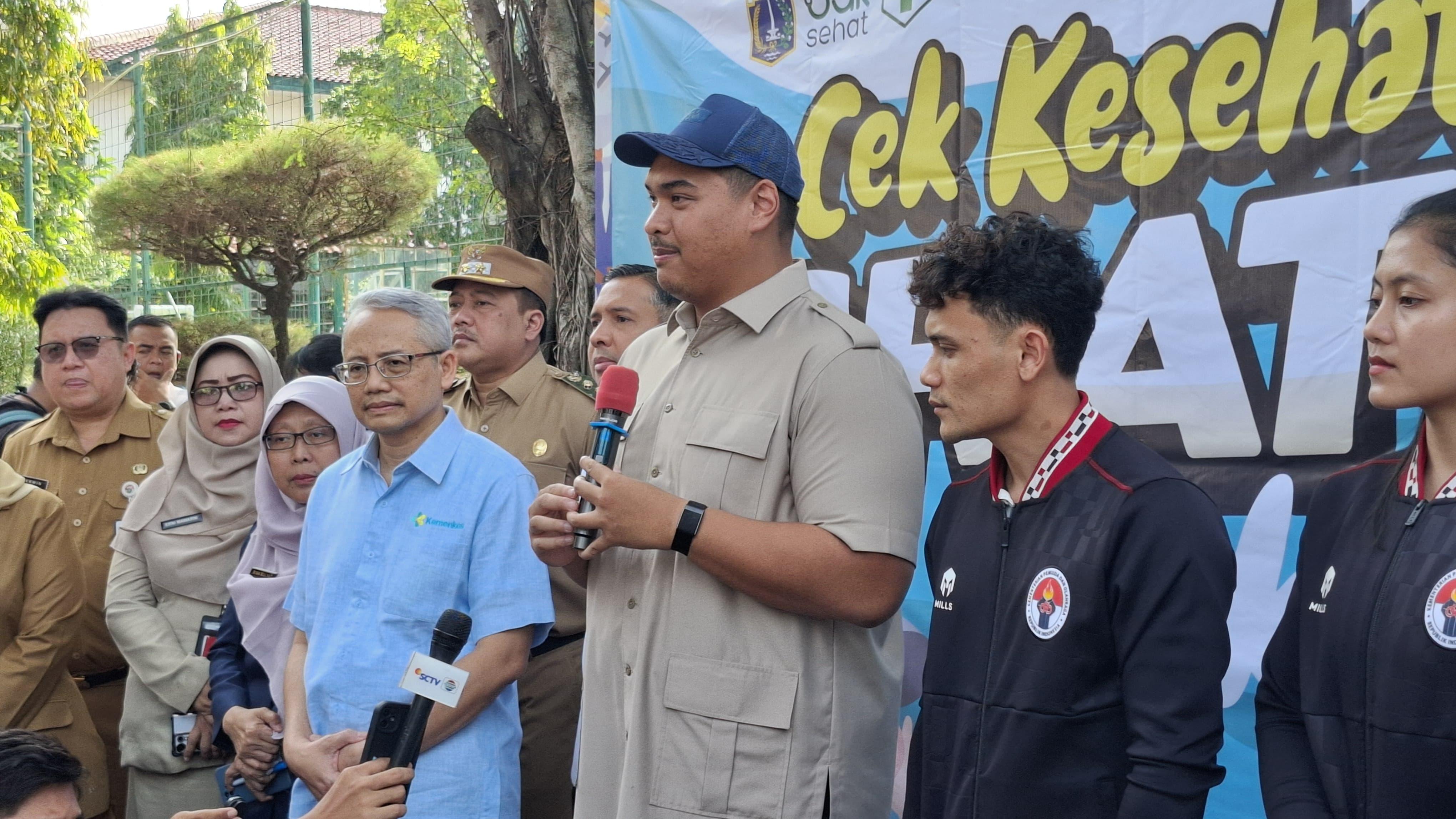 Menpora RI) Dito Ariotedjo meninjau kegiatan Cek Kesehatan Gratis (CKG) untuk siswa sekolah di SMK 26 Rawamangun, Jakarta Timur, Senin (4/8/2025).