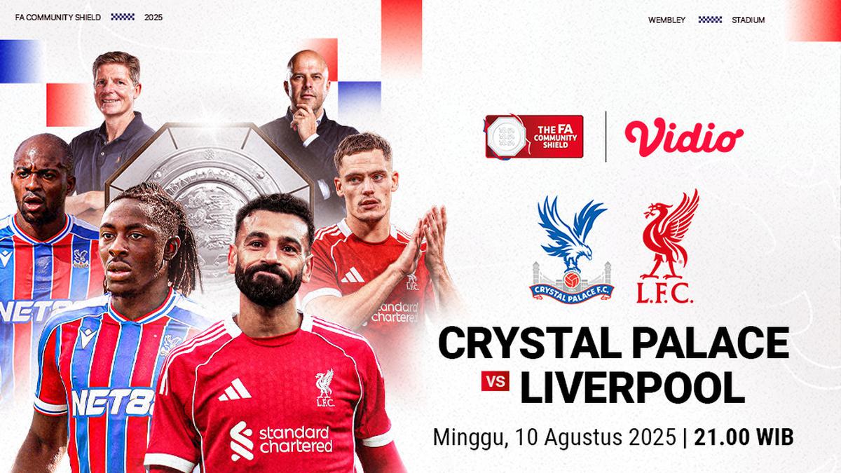 Bola.com, Jakarta Laga pembuka musim kompetisi sepak bola Inggris akan mempertemukan raksasa Liverpool menghadapi Crystal Palace di partai FA Community Shield 2025, yang digelar malam ini, Minggu, 10 Agustus 2025 pukul 22.00 WIB. Pertandingan ini berlangsung di Stadion Wembley, markas netral dan ikonik yang menjadi tuan rumah rutin ajang Community Shield. Nonton Community Shield 2025 langsung di Vidio.
