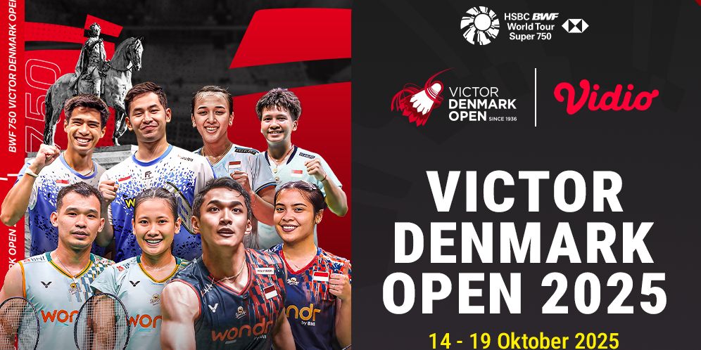 Seluruh laga dapat disaksikan secara langsung dengan nonton live Badminton Denmark Open 2025 di Vidio.