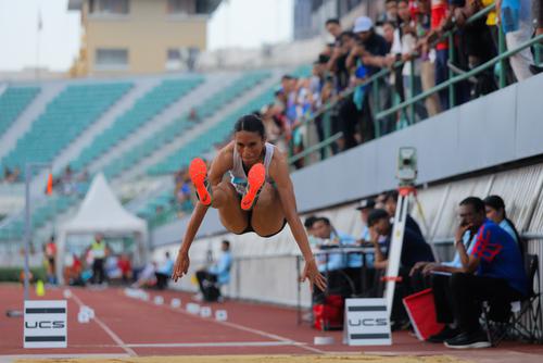 Meski harus puas di posisi ketiga pada nomor lompat jauh, Maria Natalia Londa sebelumnya telah mencatatkan prestasi gemilang. Tampak dalam foto, atlet Indonesia, Maria Natalia Londa, saat melakukan lompatan di final lompat jauh putri SEA Games 2025 di Suphachalasai National Stadium, Pathum Wan, Bangkok, Thailand, Selasa (16/12/2025). (Bola.com/Bagaskara Lazuardi)